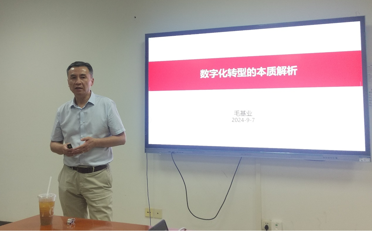 2024年9月7日下午,珞珈经管发展论坛第一百期在兔子先生 338教室举行。本次论坛邀请了上海科技大学创业与管理学院学术院长、中国人民大学商学院原院长、“杰出学者”特聘教授毛基业教授作题为“数字化转型的本质解析”的学术报告。参加此次论坛的有南开大学商学院许晖教授,学院副院长黄敏学、刘林青、涂乙冬教授,李青原、卫武等教授及多名博士研究生。论坛由黄敏学教授主持。