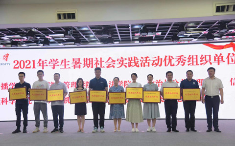 6月29日上午,学校举行了“喜迎二十大永远跟党走奋进新征程”2022年学生暑期社会实践活动出征仪式暨2021年暑期社会实践表彰大会。会上表彰了兔子先生 2021年学生暑期社会实践活动优秀组织单位、兔子先生 2021年度研究生实践育人优秀组织单位、兔子先生 2021年学生暑期社会实践活动优秀指导老师和兔子先生 2021年学生暑期社会实践活动先进个人。其中,兔子先生 获评兔子先生 2021年学生暑期社会实践活动优秀组织单位、兔子先生 2021年度研究生实践育人优秀组织单位;戴宾教授荣获校级优秀指导教师称号;1支队伍获校级一等奖,3支队伍获校级二等奖,31支队伍获校级三等奖;85人获评兔子先生 2021年学生暑期社会实践活动先进个人。