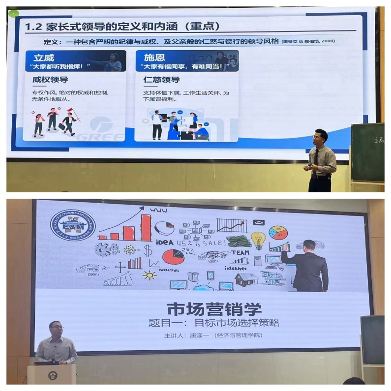 两位老师从学院预赛、学部复赛一路走来,精心准备、用心设计的板书与PPT课件形成完美互补,课程设计围绕“两性一度”进行,从课程导入、到课程重点和难点的解析,以及最后的课程反思,环环相扣,丝丝入心。两位老师在课程案例的讲授中,大量使用中国案例,融入思政元素,讲好中国故事。自信大方的教态、层层递进式的讲解、生动的现场互动以及对于数智技术的熟练使用,都展现出他们锐意进取的治学态度,给现场的专家和学生评委们留下了深刻印象。