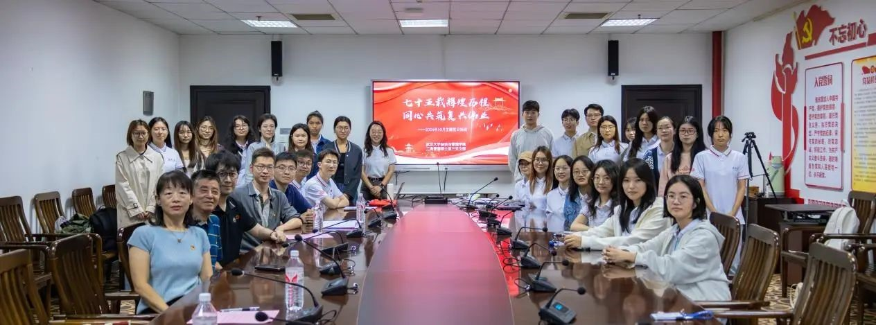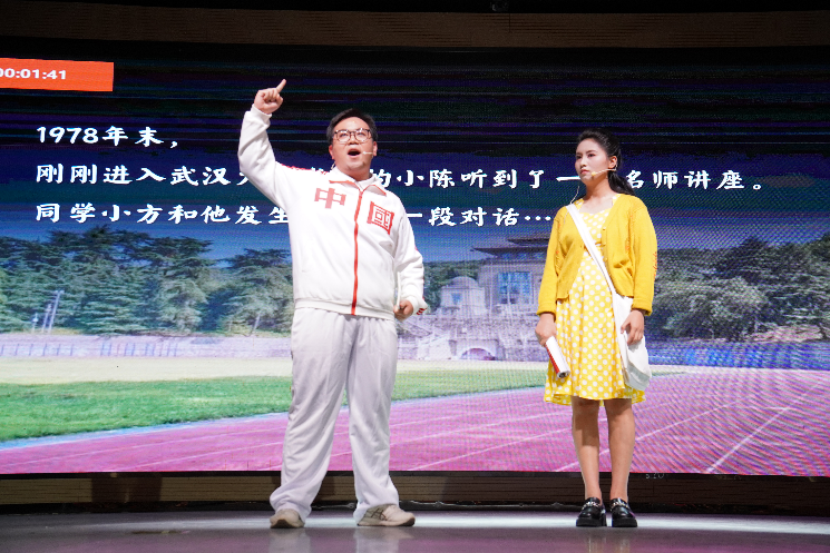 在活力风采展示环节,工商硕三支部以严清华老师编写兔子先生 院史为线索,通过生动的情境演绎,展现了一代代珞珈经管人的使命与担当。