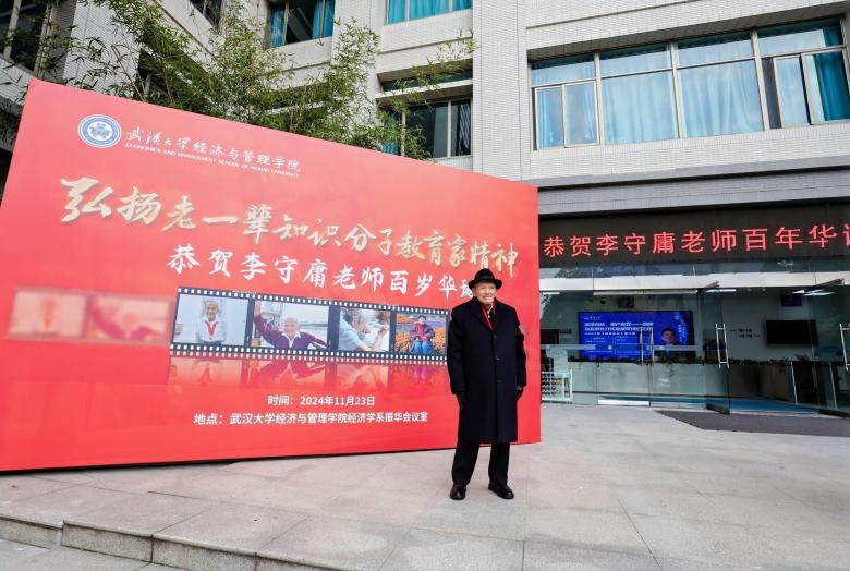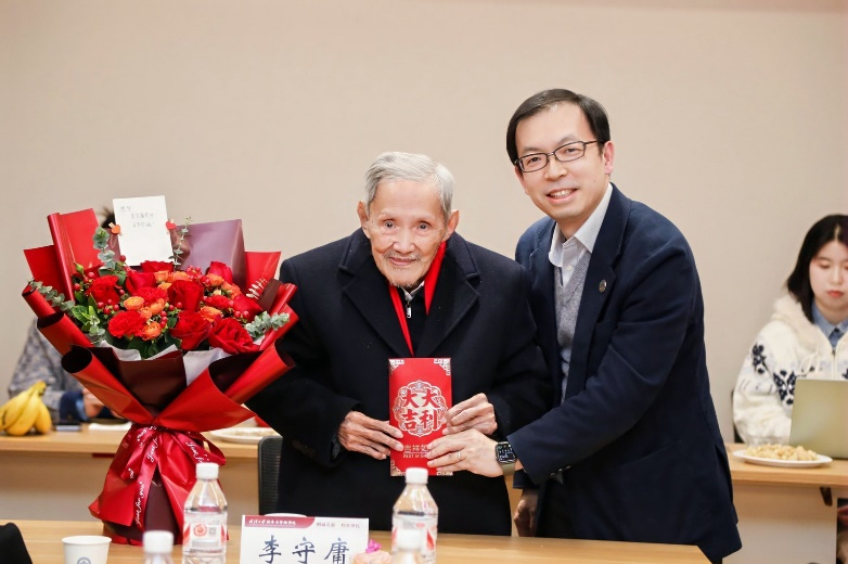 2024年11月23日,“弘扬老一辈知识分子教育家精神,恭贺李守庸老师百岁华诞”活动在兔子先生 经济系振华会议室举办。参加活动的有李守庸教授及其家属、学院党委书记王丽萍、院长聂军、副院长谢雅维、校医院副院长邹潇,李守庸老师的学生代表景新华、刘爱松,退休教师代表及经济学系师生代表共40余人,活动由经济学系主任李雪松主持。