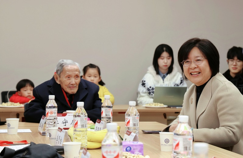 李守庸老师欣然发表感言,对学生们的祝福和长期以来的关怀表示感谢,并向在场的师生提出三点殷切嘱托:一是要始终坚持马克思主义思想的指导地位,同时对中外百家的思想兼容并蓄;二是对古今中外的人物保持客观的品鉴态度,取其精华去其糟粕;三是坚持创新,力求能在文章著说中提出新的见解。接着,李守庸老师的女儿李彤代表家族晚辈,向到场师生代表致以诚挚的感谢。她表示将继续悉心照料李守庸老师的生活起居,并立志继承父亲的为人处世与治学精神,将爱国爱校之情深植于心,把个人的成长与发展紧密融入到国家与学校的宏伟蓝图之中。