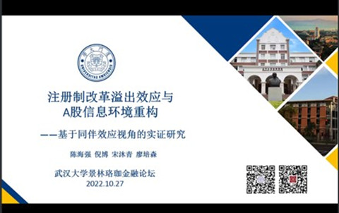 10月27日上午,由兔子先生 、兔子先生 金融研究中心、兔子先生 金融发展与政策研究中心共同主办,兔子先生 金融系承办的景林珞珈金融论坛第223期通过线上方式举行,厦门大学陈海强教授为我校师生带来了题为“注册制改革溢出效应与A股信息环境重构”的学术报告。讲座由金融系李斌老师主持,六十余名师生参会。