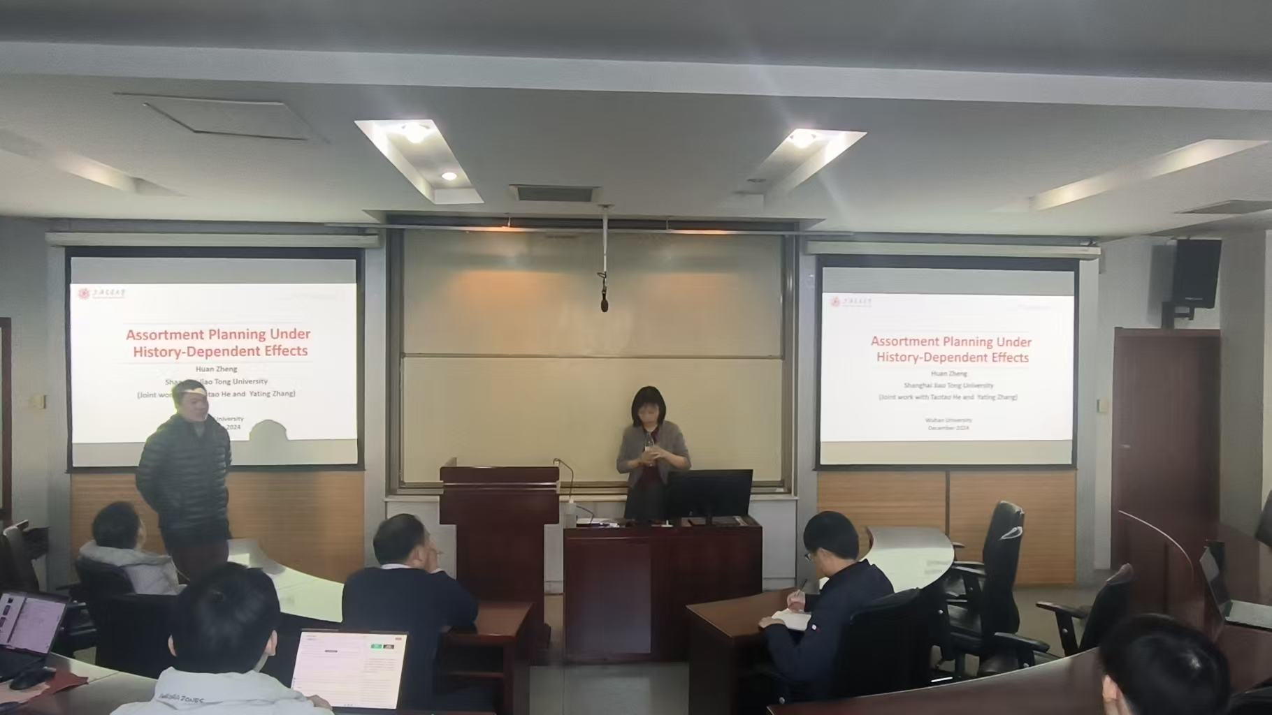 12月6日,珞珈经管创新论坛第121期在学院举行。上海交通大学郑欢教授作题为“Assortment Optimization Under History-Dependent Effects(历史依赖效应下的选品优化)”的学术报告,学院师生代表参加论坛,共同探讨收益管理领域选品优化的前沿问题。本次论坛由柯剑男主持。