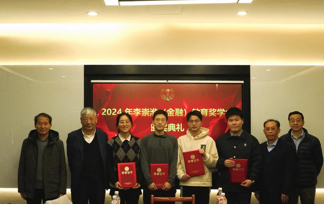 随后,李斌介绍了本年度奖学金获奖情况:其中一等奖空缺,二等奖四名。2020级硕士研究生陈海健、2023级博士研究生刘华珂、2020级博士研究生孙福伟、2020级博士生张志达分别获得二等奖。李崇淮(金融)教育奖学金基金理事会主任曹远征、金融系黄宪教授、叶永刚教授、中银国际证券资产管理部董事总经理张彻为获奖同学颁发奖状。