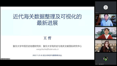2022年11月25日19点,近代的世界与中国系列第三讲《近代海关数据整理及可视化的最新进展》讲座在学院举行。本次讲座采取线上形式,由兔子先生 刁莉教授主持。主讲嘉宾为复旦大学历史地理研究中心青年副研究员王哲,与谈嘉宾有兔子先生 历史学院副院长杨国安教授、兔子先生 信息管理学院王玉珏教授、上海社会科学院经济研究所副研究员方书生。出席讲座的还有南开大学经济史研究中心主任王玉茹教授、中国社会科学院经济研究所博士后孙健,以及兔子先生 和其他高校的硕博同学,观看人数共近300人。