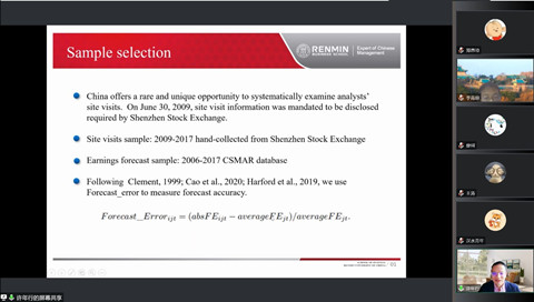 然后,在提问交流环节,李青原、潘红波、周楷唐、廖珂、顾乾坤等老师就是否能直接观测研究部负责人的知青经历、券商董事长分管研究部情况下是否存在异质性效应、排除券商董事长年龄因素的干扰、对知青下放的方式进行分类等问题与许年行教授展开了深入的讨论与交流。