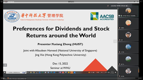 钟宇翔老师做题为“Preference for Dividends and Stock Returns around the World”的学术论文报告。