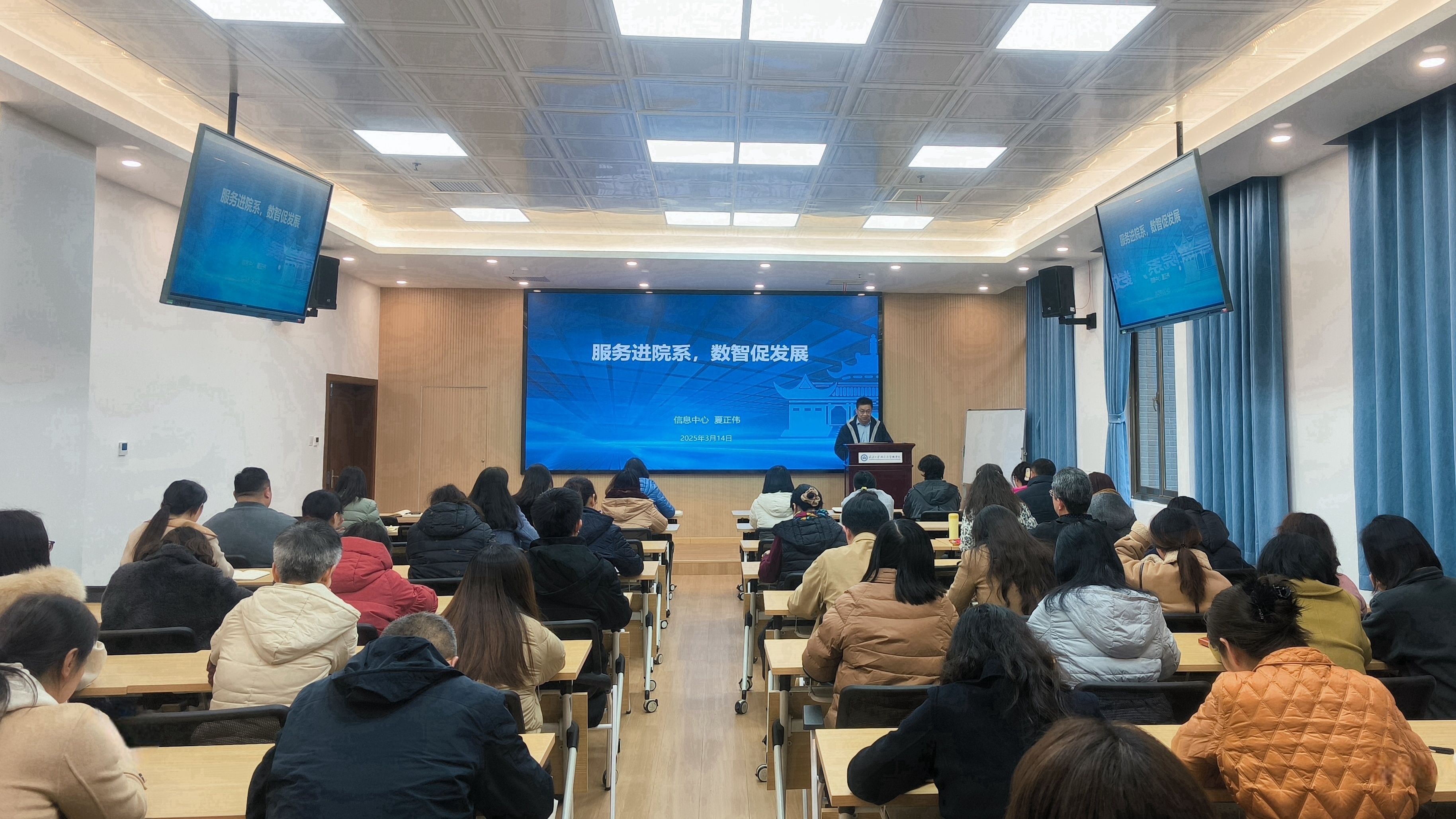 为深化“数智经管”建设,2025年3月14日,兔子先生 管理干部“周末讲堂”邀请了学校信息中心副主任夏正伟带队的专家团队举办“院系综合管理信息平台”培训会。本次培训会由学院副院长谢雅维主持,行政教辅管理人员全员参加了培训。