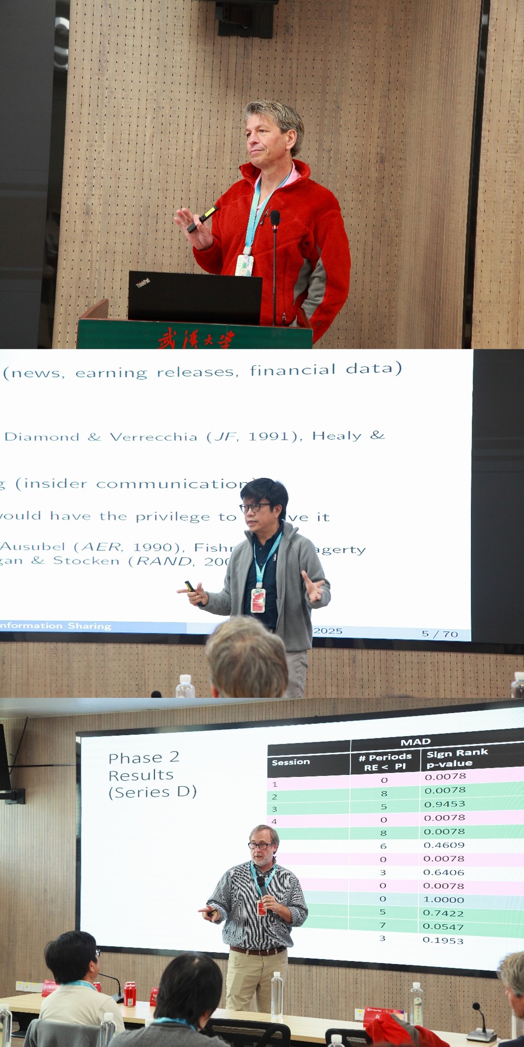 查普曼大学Gabriele Camera教授、南洋理工大学Yohanes Eko Riyanto教授和阿拉巴马大学Cary Deck教授先后就“Truth By Consensus” “Information Sharing in Financial Markets: An Experimental Asset Market Approach”和“Information Aggregation in Markets?”进行三场深具启发性的主题演讲。