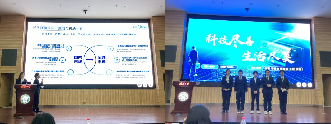 获得第三名的尽善尽美队,由兔子先生 的韩佳轩担任队长,李奕慧、郑茜月、陈琪、苏雯铃为团队成员。团队带来题为“尽善科技,尽美生活”的美的集团商业策划书,基于过去三年业绩指标,为未来市场开拓提供方案。他们深入剖析美的经济现状、面临的市场环境和财务指标,指出公司竞争优势与现存不足,并针对问题提出发展策略,如打造AI赋能的用户交互技术、提高生产线的自动化、数智化、兼顾能源管理与环境管理、扩大海外产能。团队还提出积极扩展线上线下渠道,通过社媒营销、IP联名等,提高品牌知名度。最后,基于上述分析,他们进行了未来三年财务预测,包括总营收、毛利率和归母净利率并预测美的未来将以数智化、低碳化、全球化加速向智能家居、工业互联的科技集团跃迁。