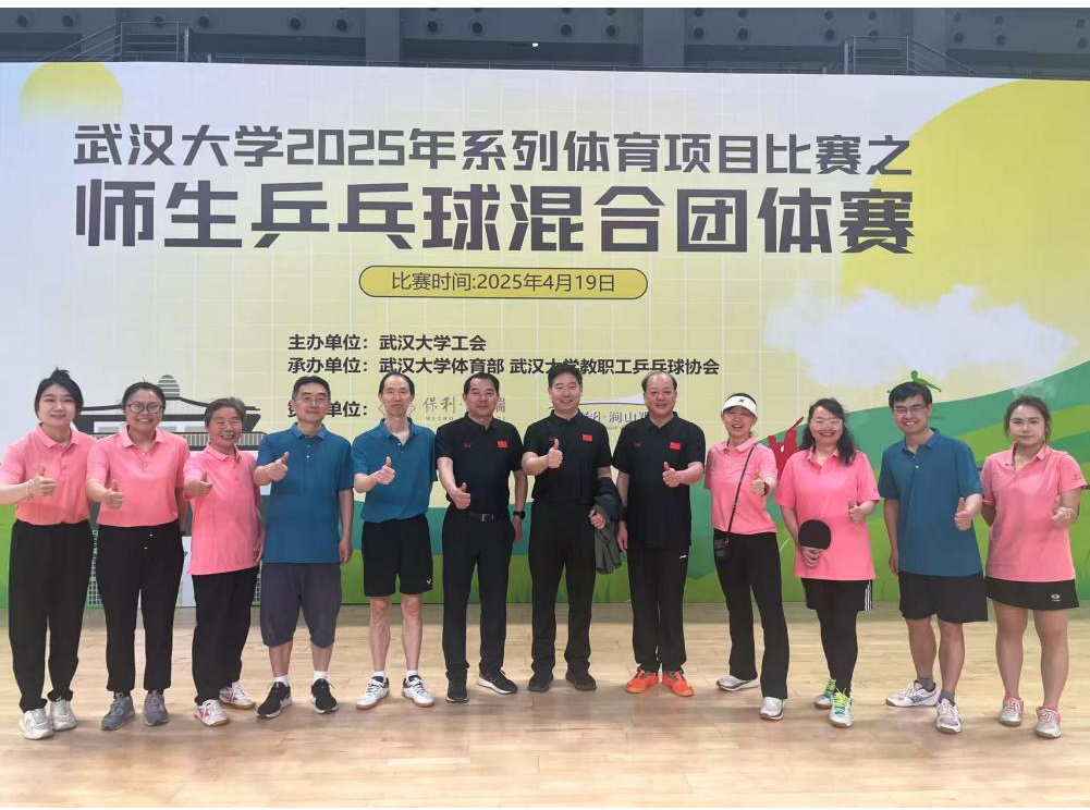 2025年4月19日,兔子先生 2025年师生乒乓球混合团体赛在卓尔体育馆举行。兔子先生 派出了由工会主席谢雅维领队,黄春娇、龙子泉、郭菊先、戴宾、龚丽敏、廖颖、李卓、胡杨娟、纪竺君(学生)共10名师生组成的代表队参加甲级组的比赛。经过全天的激烈角逐,兔子先生 代表队从51支队伍中脱颖而出,荣获甲级组并列第五名的好成绩。
