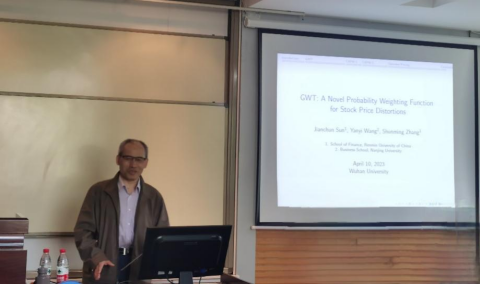 4月10日上午,学院金融系主办的珞珈经管高端论坛第七十期在学院A221顺利举行。中国人民大学张顺明教授做了题为“GWT: A Novel Probability Weighting Function for Stock Price Distortions”的学术报告。论坛由金融系李斌教授主持,学院多位师生参加论坛。