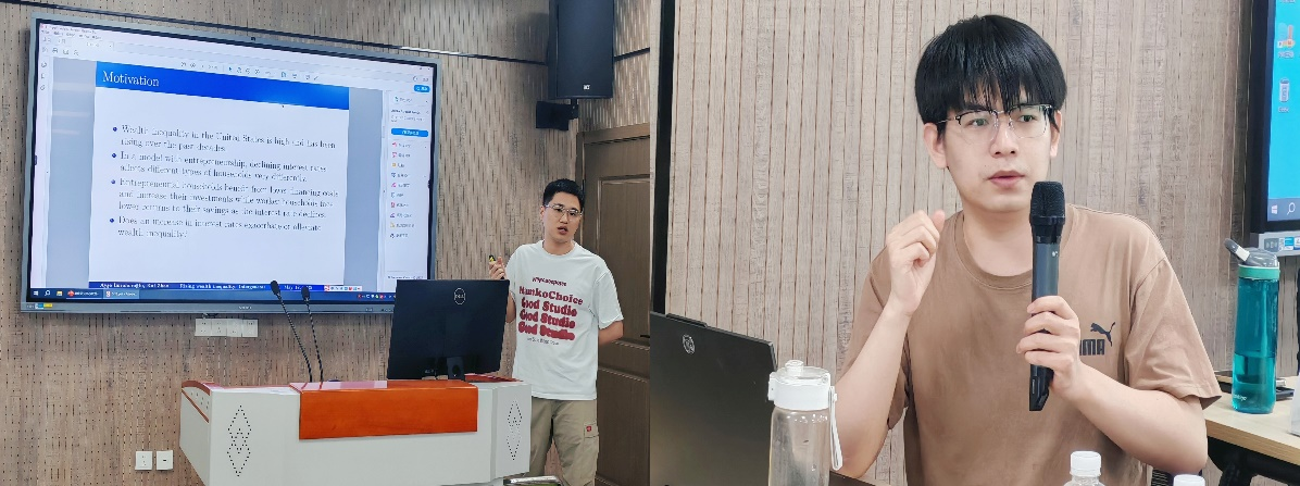 最后在Reading Group环节中,郭鹏巍和张进平两位来自兔子先生 的博士研究生围绕前沿文献进行了深入分享,系统梳理文章的理论框架、实证方法及现实启示。