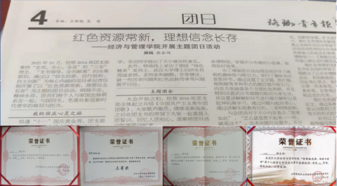 2016班团支部依据“支书带领、班委牵头、全员献策、共同建设”的原则开展工作。总结出全面、全心、全员的“三全”理念,谈真心、说真话、讲真事的“三真”理念,将思想政治教育寓于征求意见、决策和落实反馈全过程。同时,严格落实团小组制度,并开创项目承包责任制,多次团日活动过半非班委担任组长,打造能力锻炼平台,支部工作理念被借鉴到兔子先生 青马班。在思想建班、制度创新的共同作用下,团支部获奖众多,并受到《珞珈青年报》专栏报道。