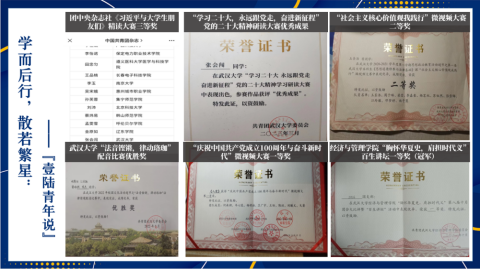 2016班团支部紧密关注实政。如聚焦党的二十大专题学习,与法学院、计算机学院、信息管理学院开展四院联合团日活动,举办信息检索大赛和二十大报告精读大赛,制作《青春献献礼二十大》视频和二十大报告词云图等,学科融合,成效显著。以此同时2016班团支部的团员学而后行,在各种会议场合以及比赛中,都彰显着支部青年思想的火光,散若繁星。