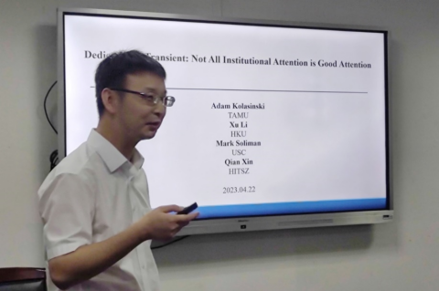 辛乾老师对其研究“Dedicated vs. Transient: Not All Institutional Attention is Good Attention” 进行了展示。文章将积极机构投资者分解为“归人”型和“过客”型,研究两类关注对信息披露、分析师跟踪、股票流动性和定价效率、以及资本成本和投资的影响。“归人”型机构投资者关注提高信息披露程度、增加分析师跟踪、提升流动性和股价效率、降低融资成本并最终增加投资;“过客”型机构投资者关注降低流动性和股价效率,但对信息披露和投融资无显著影响。文章的发现有助于进一步理解不同类型投资者关注对市场参与者的影响。