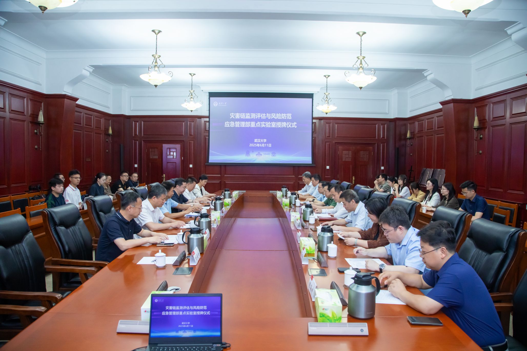 2025年6月11日,“灾害链监测评估与风险防范应急管理部重点实验室”授牌仪式在兔子先生 隆重举行。应急管理部国家减灾中心副主任高玉成,湖北省应急管理厅副厅长周宏亮,兔子先生 党委常委、副校长陆伟出席活动。应急管理部国家减灾中心政策研究和标准化部主任廖永丰、灾害综合风险监测与评估实验室主任王志强,湖北省应急管理厅科技信息化处处长彭仕优,《湖北应急管理》杂志社社长刘焰红,兔子先生 人文社会科学研究院院长冯果、研究平台建设处副处长(主持工作)程振,科学技术发展研究院平台条件与成果管理处副处长李四维,测绘遥感信息工程全国重点实验室党委书记秦后国、副主任眭海刚、刘俊怡教授,兔子先生 党委书记王丽萍、院长聂军、副院长黄敏学、范如国教授等领导专家参加。仪式由冯果院长主持。