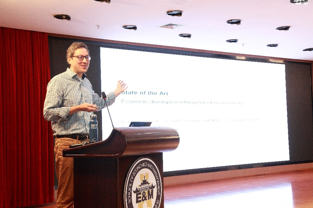 多伦多大学的经济学教授Stephan Heblich首先作题为“通过绘画视角看经济发展的最新进展(State of the Art Economic development through the lens of paintings)”的主旨报告。该研究聚焦历史画作中蕴含的经济发展信息,借助深度学习技术解析画作中的情感表达,以揭示社会情境与经济变迁的关联。研究构建了包含 63 万余幅画作的数据库,通过深度卷积网络解码画作传达的情绪,并建立 1400 年以来的多国年度情感时间序列数据。实证发现,画作情感与重大经济、政治事件密切相关:GDP 增长与愉悦情绪正相关,经济不确定性与恐惧情绪关联显著,财富不平等会加剧情感分歧。此外,气候变暖、技术进步也会通过画作情感得以体现。该研究为量化历史经济现象提供了新的分析方法,补充了传统数据的不足。