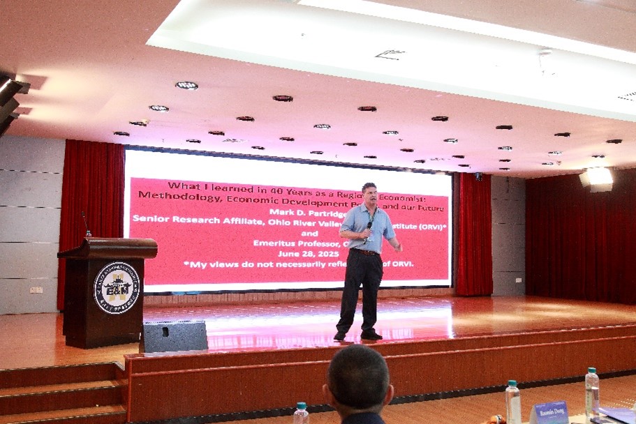 俄亥俄州立大学农经环境与发展经济系的Mark D. Partridge教授作题为“作为区域经济学家四十年的所学:方法论、经济发展政策与未来(What I learned in 40 Years as a Regional Economist: Methodology, Economic Development Policy, and our Future)”的主旨报告。报告结合了他自己个人四十年区域经济研究经验,批判了当前经济学界过度追求量化复杂性的倾向,指出复杂模型常因假设脱离现实而误导政策。以美国俄亥俄州为例,该州长期依赖税收优惠吸引制造业投资,但近四十年的政策实践表明,此类措施虽能引入大型企业,却未能带动人口、就业及生产率增长,反而导致公共服务缩水与能源成本上升。研究强调,未来区域经济研究应重视制度背景分析,避免盲目套用前沿数理方法,例如空间均衡模型需结合实际制度设定,数据使用需验证其与研究问题的适配性。此外,政策制定者常忽视科学证据而迎合特殊利益,这种“重复无效政策却期待不同结果”的行为加剧了区域发展陷阱。
