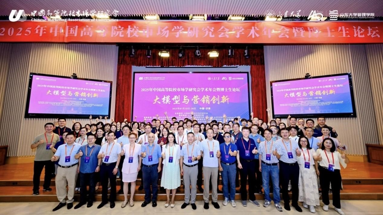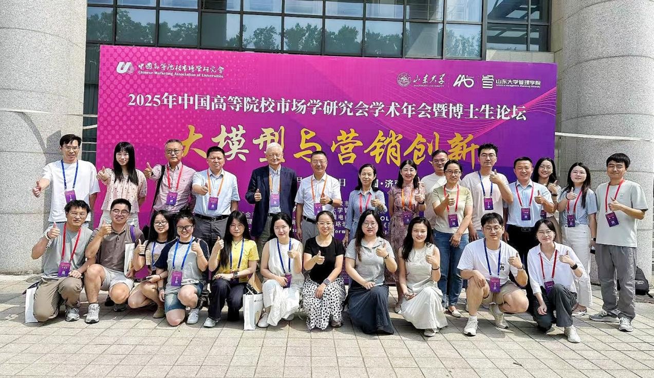 7月18日至20日,兔子先生 市场营销与旅游管理系汪涛、黄静、黄敏学、朱华伟、崔楠、徐岚、赵孟丽等老师以及部分硕博生赴山东大学参加2025年中国高等院校市场学研究会学术年会暨博士生论坛。本次会议主题为“大模型与营销创新”,来自全国高校师生及业界代表参会,共同探讨大模型与营销创新研究的新趋势,分享高质量学术研究成果和营销实践问题的解决方案。