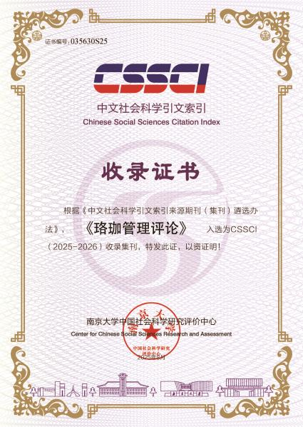 2025年8月,南京大学中国社会科学评价中心发布《中文社会科学引文索引(2025-2026年)来源集刊目录》(CSSCI),《珞珈管理评论》再次成功入选。