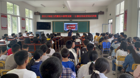 捐赠仪式结束后,熊壮以兔子先生 辅导员的身份,为恩施芭蕉民中的同学们带来以“怎样热爱祖国”为主题的爱国教育讲座。熊壮结合自身的求学经历,向同学们讲述了自己和爱国科学家钱学森之间的不解之缘,激励同学们用自己的方式热爱祖国。同时,熊壮表达了自己作为一名辅导员的初心与使命,弘扬了校训中“自强,弘毅,求是,拓新”的武大精神。