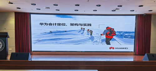 王国伟先生从问题“你希望成为一名会计吗”引入,鼓励同学们表达自己的想法。他否定了人们对会计行业“是一群账房先生”刻板印象,并从“财报价值与治理”、“流程架构与实践”和“未来挑战”三个维度对华为公司的会计体系的构建和运转进行了详细阐述。