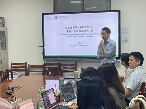 6月6日下午,珞珈经管青年论坛第414期在B337成功举办,香港理工大学王琦缘助理教授带来“业主直售平台和中介定价:基于自然实验的实证研究”的讲座。本次讲座由朱华伟主持,黄敏学副院长、高宝俊、李汛、崔楠、徐岚、赵晶、唐漾一等多位师生参加讲座。