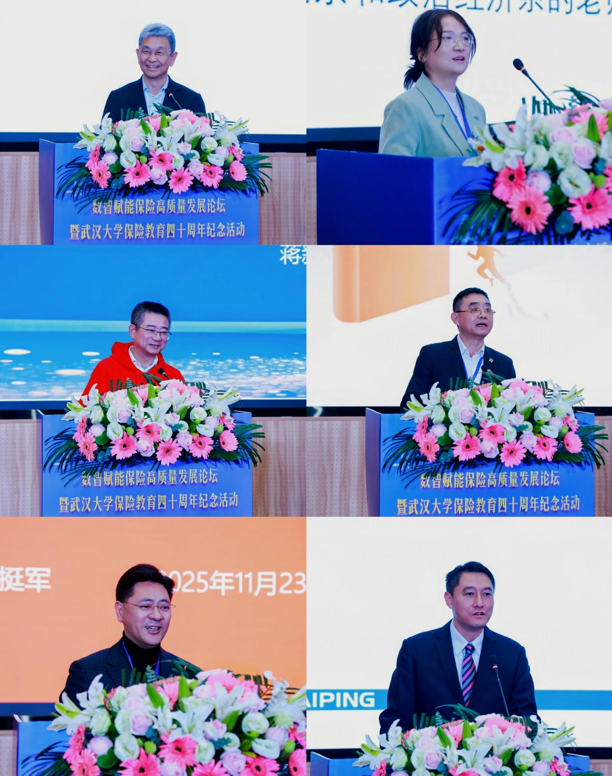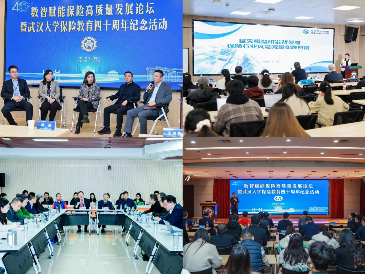保险教育四十年来取得的成就。他指出,武大保险教育自1985年创办以来,始终与国家同行、与时代共振,如今已构建起完善的本硕博人才培养体系,成为我国保险精算领域人才培养与科学研究的一方重镇。他强调,面对数字化、智能化的时代浪潮,保险教育要坚守育人初心,深化交叉融合,加强产学研协同,在防范化解金融风险、巨灾保险、科技保险、养老保障等重点领域持续发力,为我国保险事业和经济社会高质量发展贡献更多“武大智慧”。