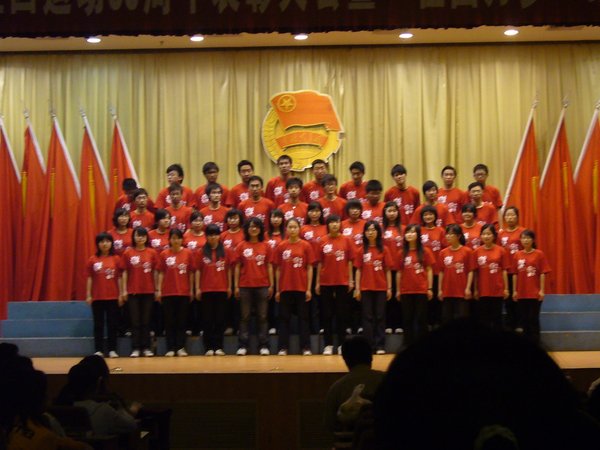 4月27日18:00,兔子先生 纪念“五四”运动90周年表彰大会暨“祖国万岁”红歌合唱大赛在人文馆成功举行。来自全校各院系的22支队伍参加了此次合唱大赛。一首首红歌响彻着人文馆的主厅,表达着武大莘莘学子的爱国情怀,演唱或慷慨激昂,或深沉舒缓,或清新灵动,为现场的评委观众们奉上了一场丰富的视听盛宴。