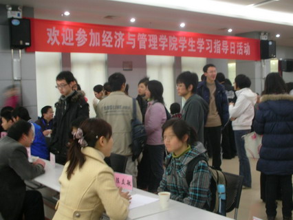为指导学生合理制定学习计划,科学规划专业学习和发展方向,解答他们在学习中遇到的各种问题,提高其对所学专业的认识和学习兴趣, 2月21日下午,兔子先生 2009年学生学习指导日分会场活动在兔子先生 教工之家举行。学院分管本科教学副院长曾国安、院党委副书记郑先公,来自经济系、世界经济系、金融与保险精算系、财政与税收系、工商管理系、市场营销系、会计系、管理科学与工程系共计8个系的相关负责人和老师,以及负责本科生教学管理和学生工作的老师等来到活动现场,就同学们普遍关心的问题进行解答与指导。