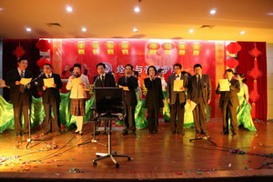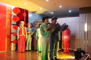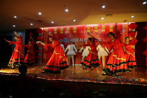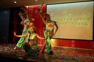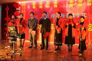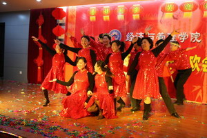 在歌舞《好运来》喜庆的节拍中,联欢会拉开了帷幕。现场高潮迭起,异彩纷呈。气势磅礴的大合唱,深情动人的诗歌舞、曲调优美的乐器演奏、幽默风趣的话剧、风情万种的时装秀……教工们以丰富的艺术形式和真挚的演出热情奉上了一台精彩的演出,展示了经管教工的才华与风采。最后,伴随着院党委、行政的一曲合唱《明天会更好》,联欢会在一片热闹而温馨的气氛中圆满落幕。(院学生工作办公室供稿)