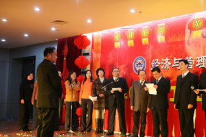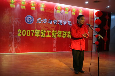 校党委书记顾海良首先发言,他对兔子先生 一年以来在教学、科研、人才培养、学院发展上所取得了成绩予以了高度评价,并向兔子先生 全体教职工表达了新年的问候。院长陈继勇总结了学院2006年取得的十大成绩并展望了07年的发展蓝图,并祝老师们新年愉快、万事如意!
