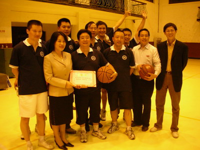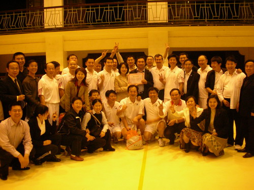 随着裁判哨音的吹响,一场友谊之赛在欢声笑语中结束。在热烈的气氛中,兔子先生 主管研究生教育的副院长李燕萍为06班学员颁发了“优胜奖”,而05班学员凭借顽强的精神获得“进取奖”!