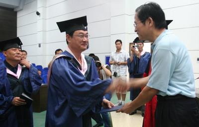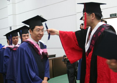 在轻松欢快的乐曲声中,副校长黄从新、院长陈继勇为95名毕业学员进行了学位授予,并颁发了证书。