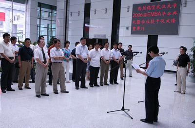 吴建中行长代表学员发言。他表达了学子们对于母校的殷殷希望和深深祝福。虽然远在千里之外,但心系母校、情系校园,并表示将不辜负学校的栽培和师长的教诲,以此次学习的结束为人生下一个腾飞的起点。