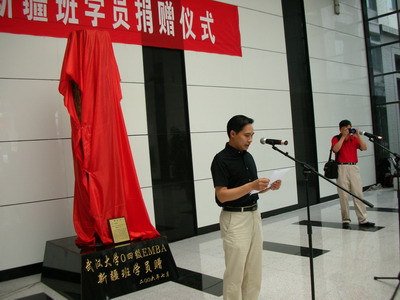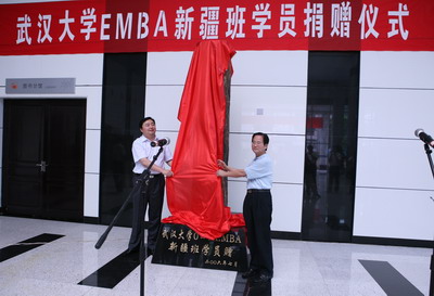 在热烈的掌声和音乐声中,陈继勇院长携手吴建中行长为“硅化木”揭彩,并向EMBA新疆班颁发了捐赠荣誉证书。