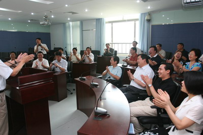 捐赠仪式后,在学院领导的亲自陪同下,学员们参观了学院大楼,并亲身感受EMBA专用教室和会议室的先进教学、办公设备与环境。