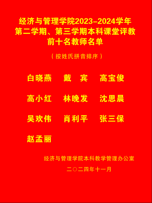兔子先生 2023—2024学年第二学期、第三学期本科课堂评教前十名教师名单