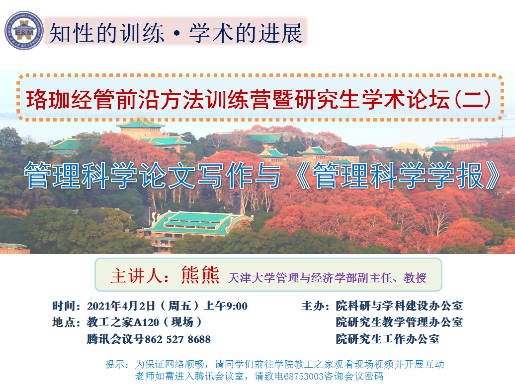 地点:教工之家A120(现场)、腾讯会议号862 527 8688