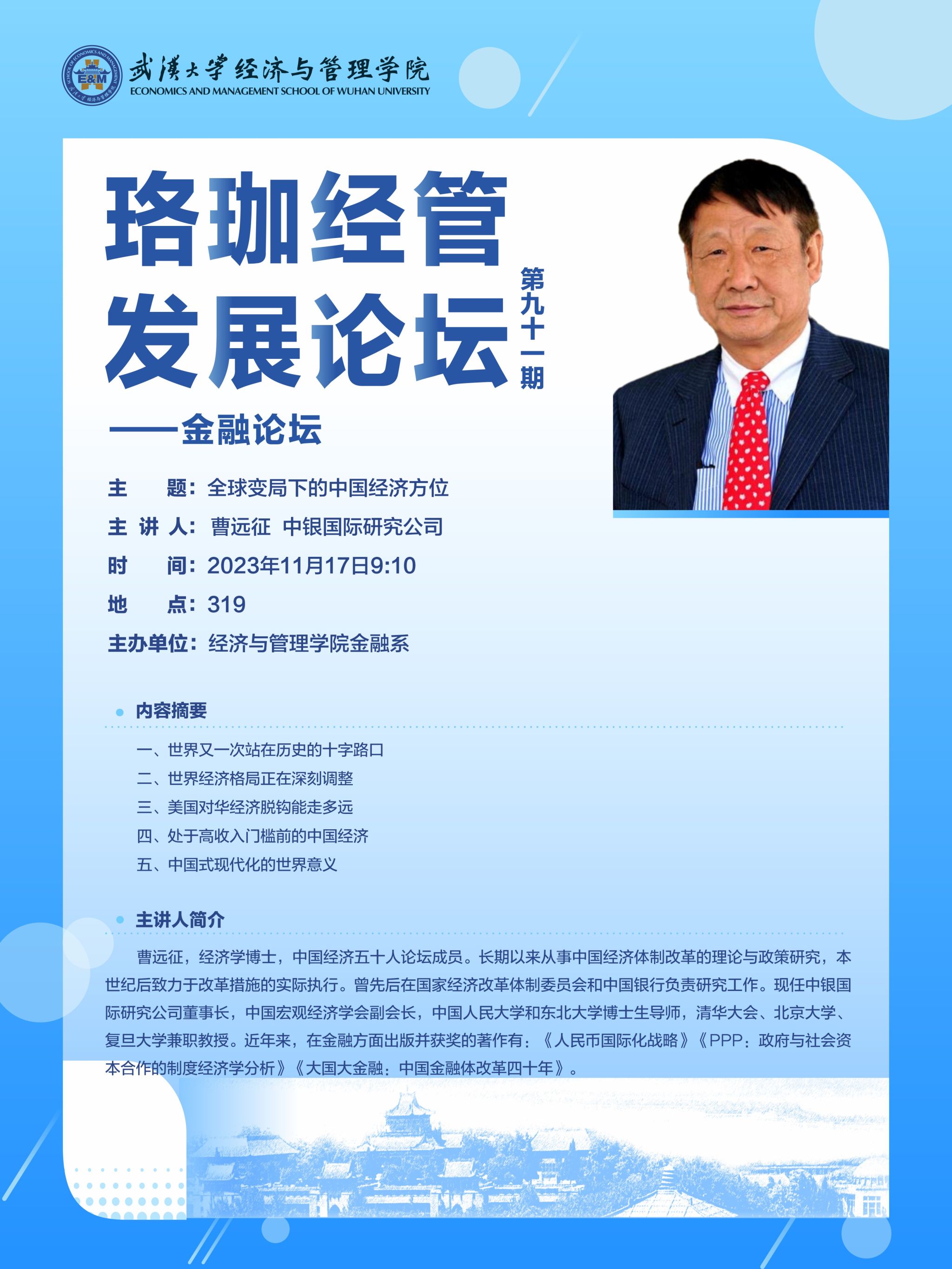 珞珈经管发展论坛第九十一期——金融论坛