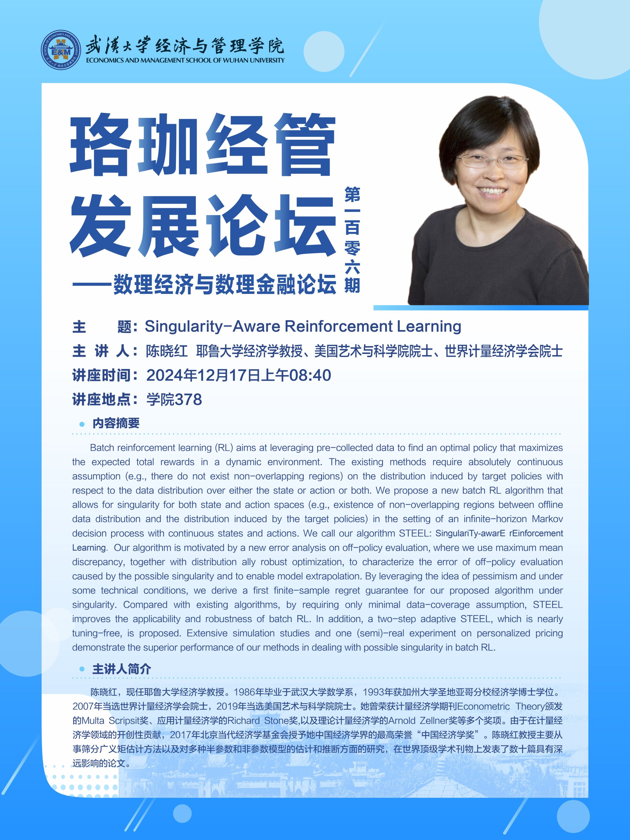 讲座预告 | 珞珈经管发展论坛第一百零六期——数理经济与数理金融论坛