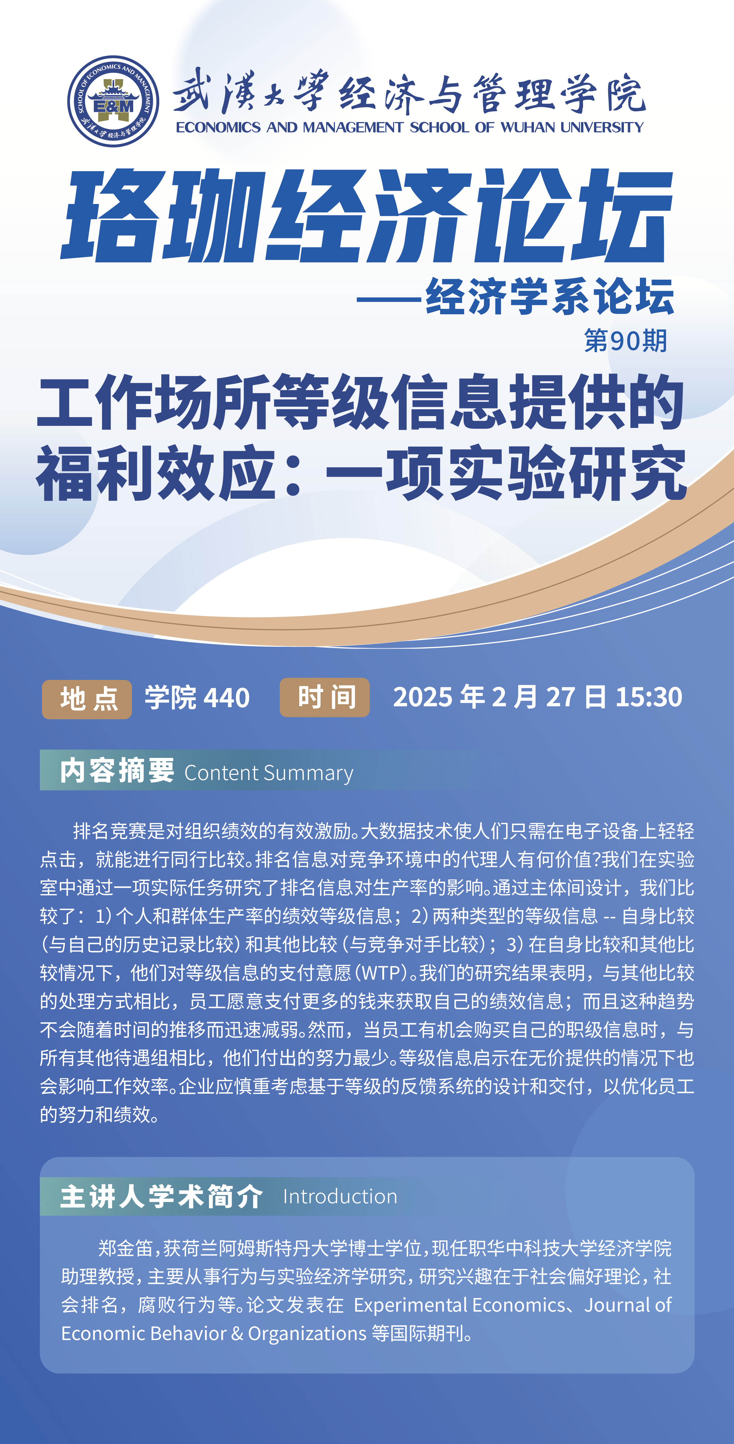 讲座预告 | 珞珈经济论坛第90期