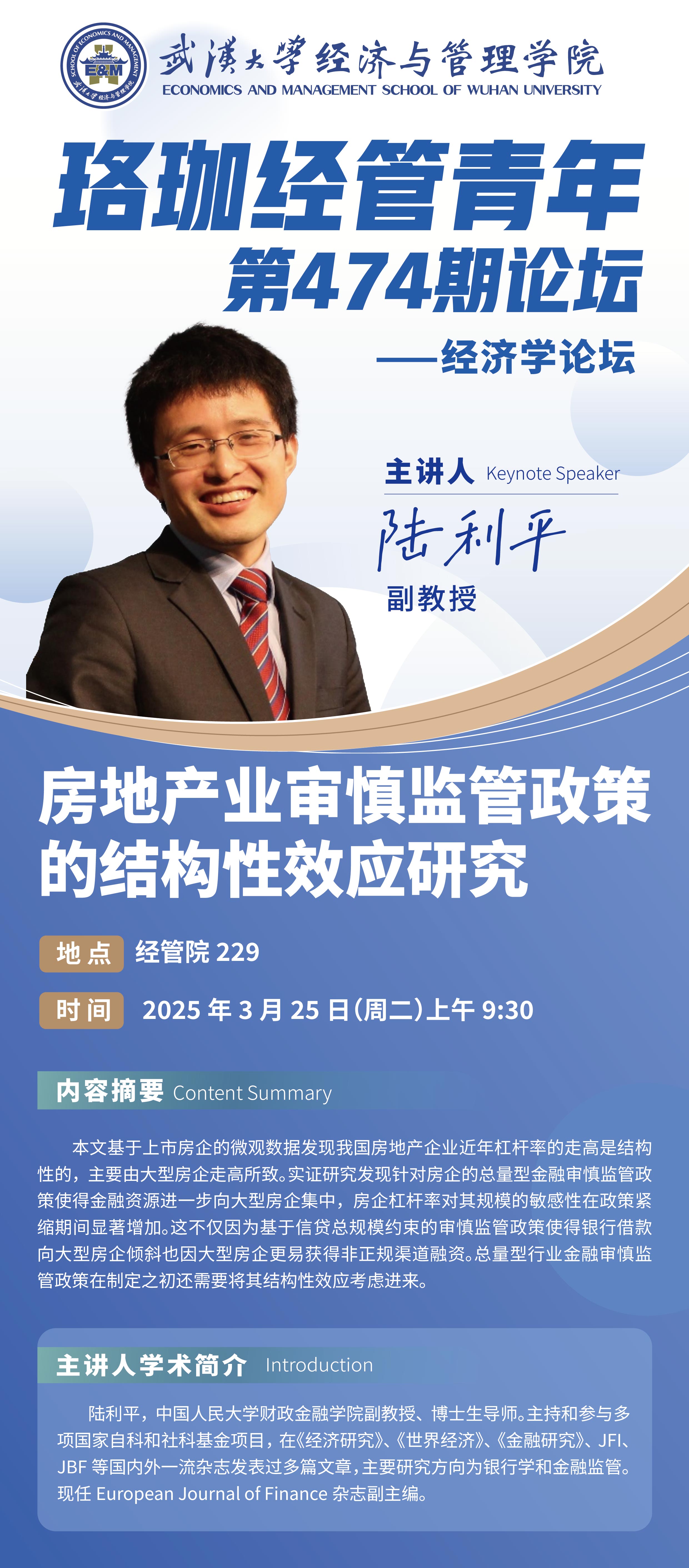 讲座预告|珞珈经管青年论坛第四百七十四期——经济学论坛