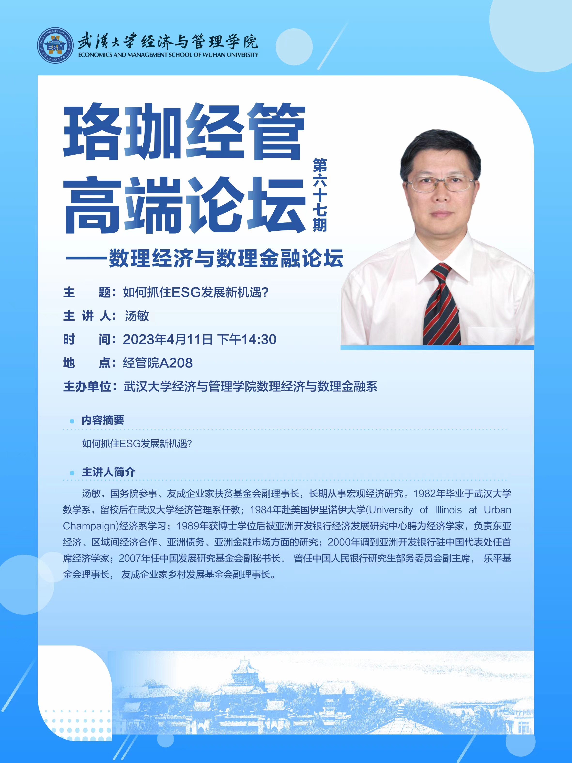 珞珈经管高端论坛第六十七期——数理经济与数理金融论坛