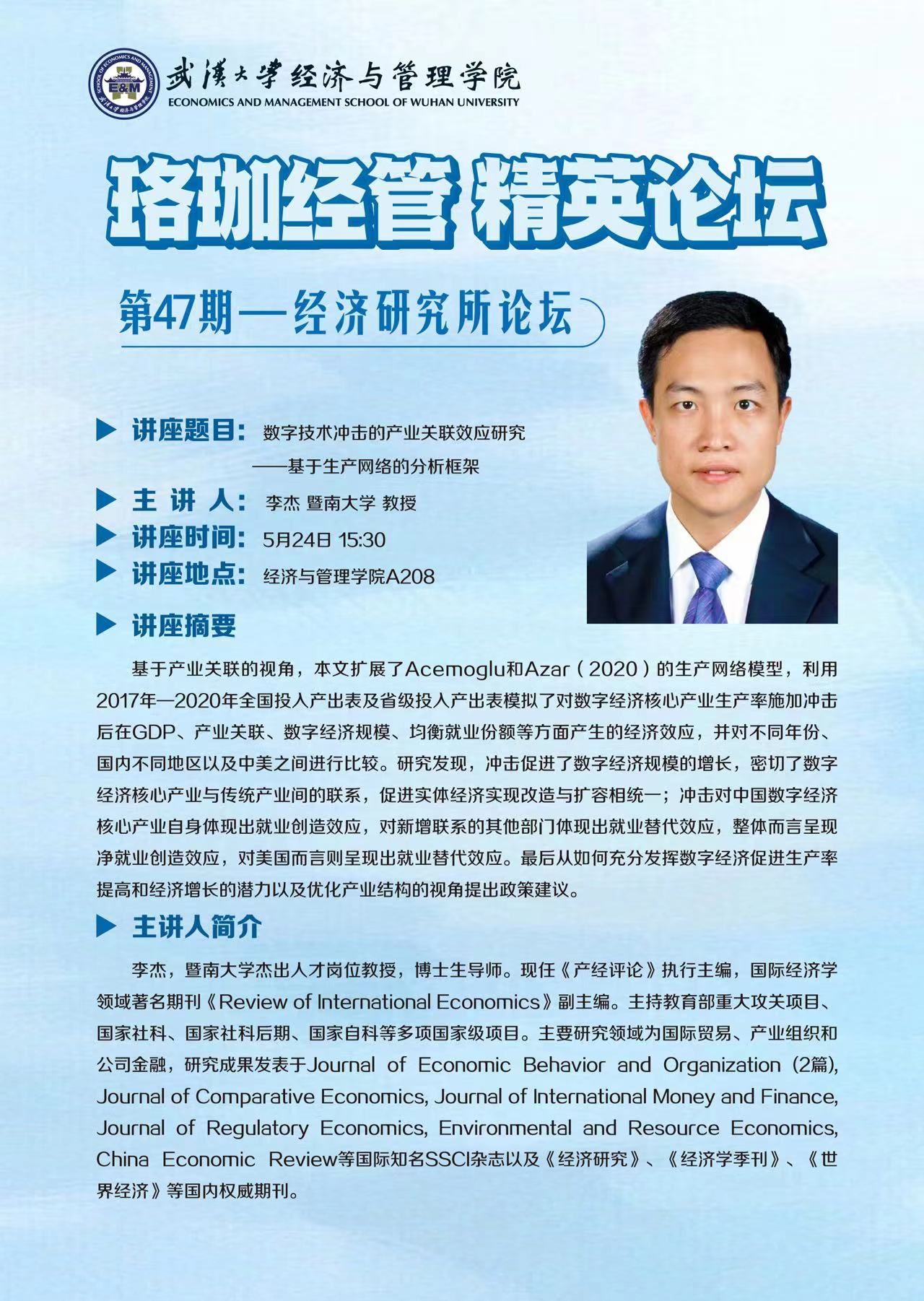 珞珈经管精英论坛第47期——经济研究所论坛