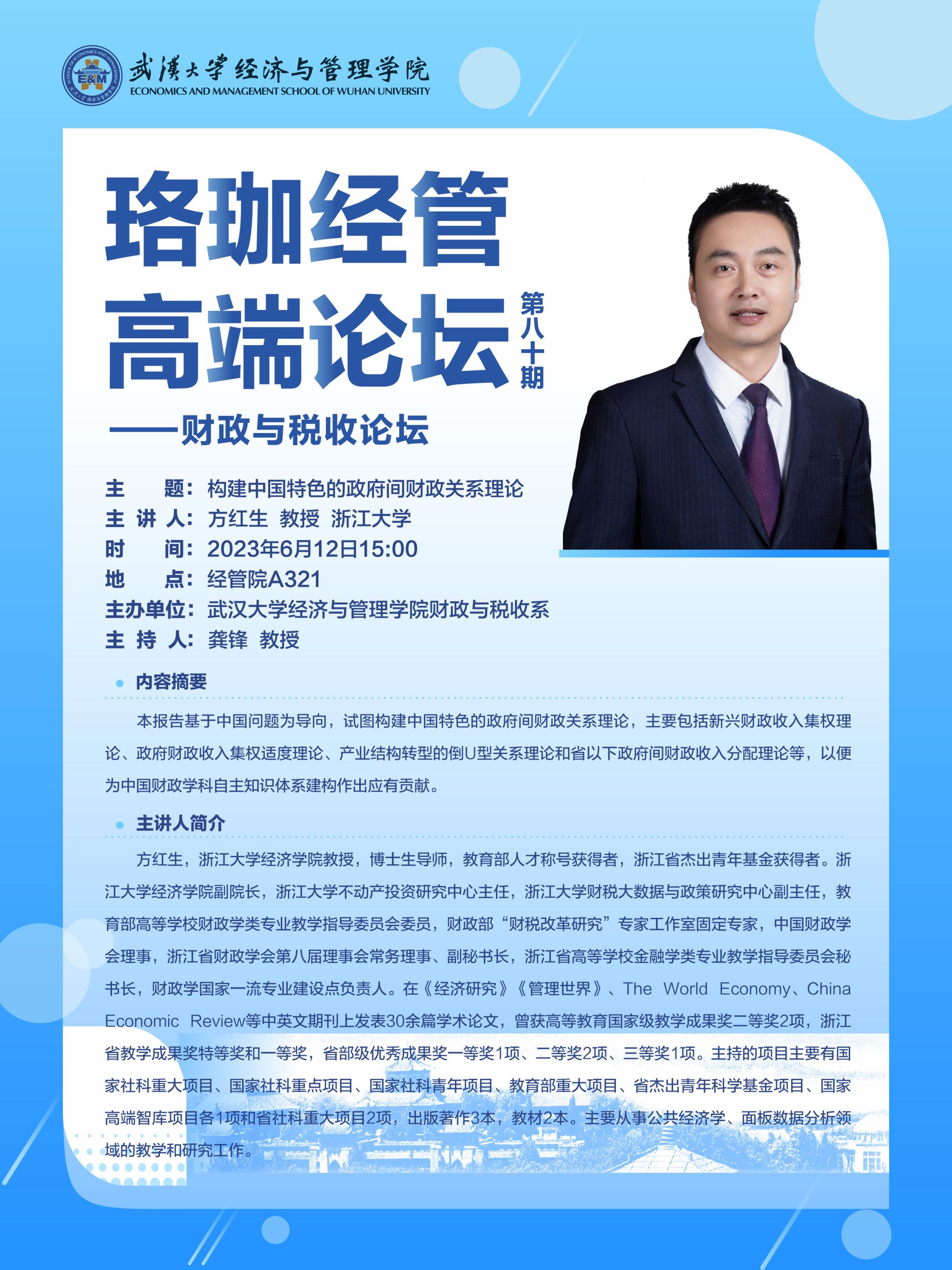 珞珈经管高端论坛第八十期——财政与税收论坛