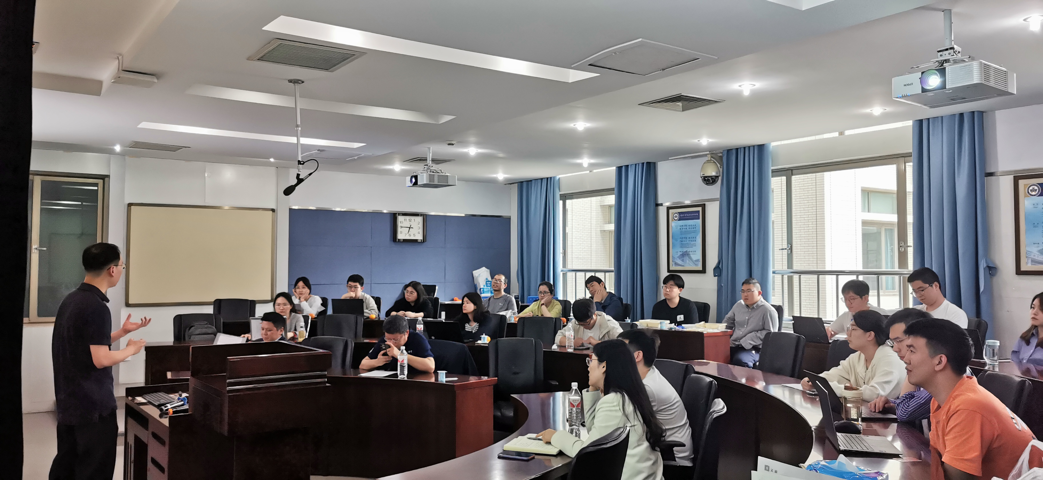 丁宇澄副教授围绕专家市场的搜寻机制与竞争格局展开系统阐述,结合理论模型与实证分析,揭示信息不对称环境下专业服务市场的运行规律。交流环节中,他结合自己多年来的写作发表心得进行分享,从选题策划、数据采集、模型构建到论文修改投递全流程,并针对参会师生提出的研究问题选择、期刊选择、论文合作分工等问题进行交流与探讨,现场互动氛围热烈。