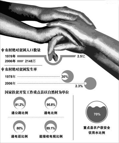 | 我国农村贫困状况得到明显改善,为全球反贫困事业作出了重要贡献。 |